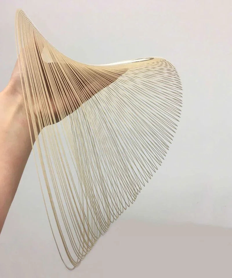 Echtholz in Perfektion: Die feinen Buchenholzelemente werden mit Präzision geformt, sodass sie eine harmonische und fließende Struktur bilden. Jeder Holzstreifen ist einzigartig und verleiht der Lampe einen unverwechselbaren Charakter.